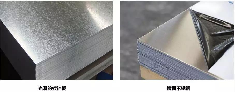 例如下圖中的常用鍍鋅板和鏡面不銹鋼,相對而言,鏡面不銹鋼肯定更難加工一些: