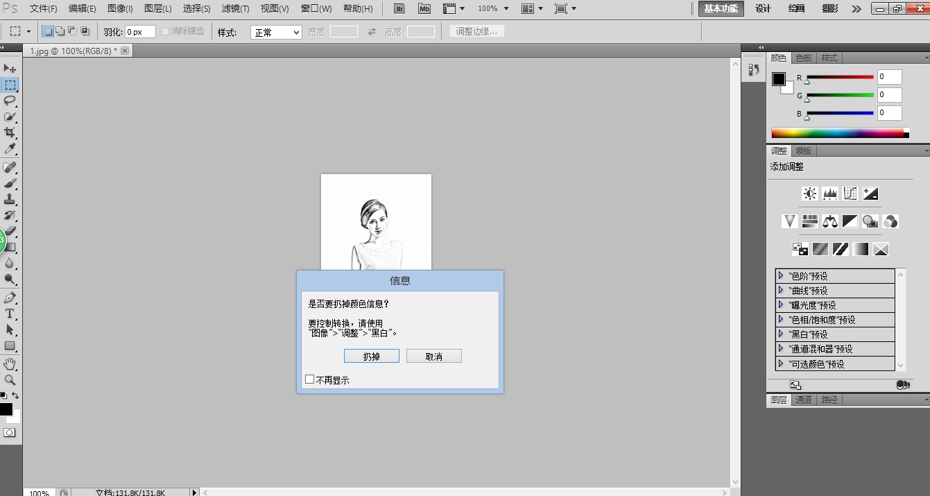 8、點擊菜單欄圖像—模式—灰度—扔掉,這個灰度非常重要,一定要扔掉。