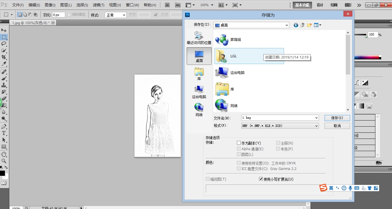 9、這個時候,假如圖片很清晰的話,你就可以直接保存這個位圖文件了,點擊菜單欄文件—存儲為—填入文件名/選擇文件格式(BMP或者jpg格式都可以)。