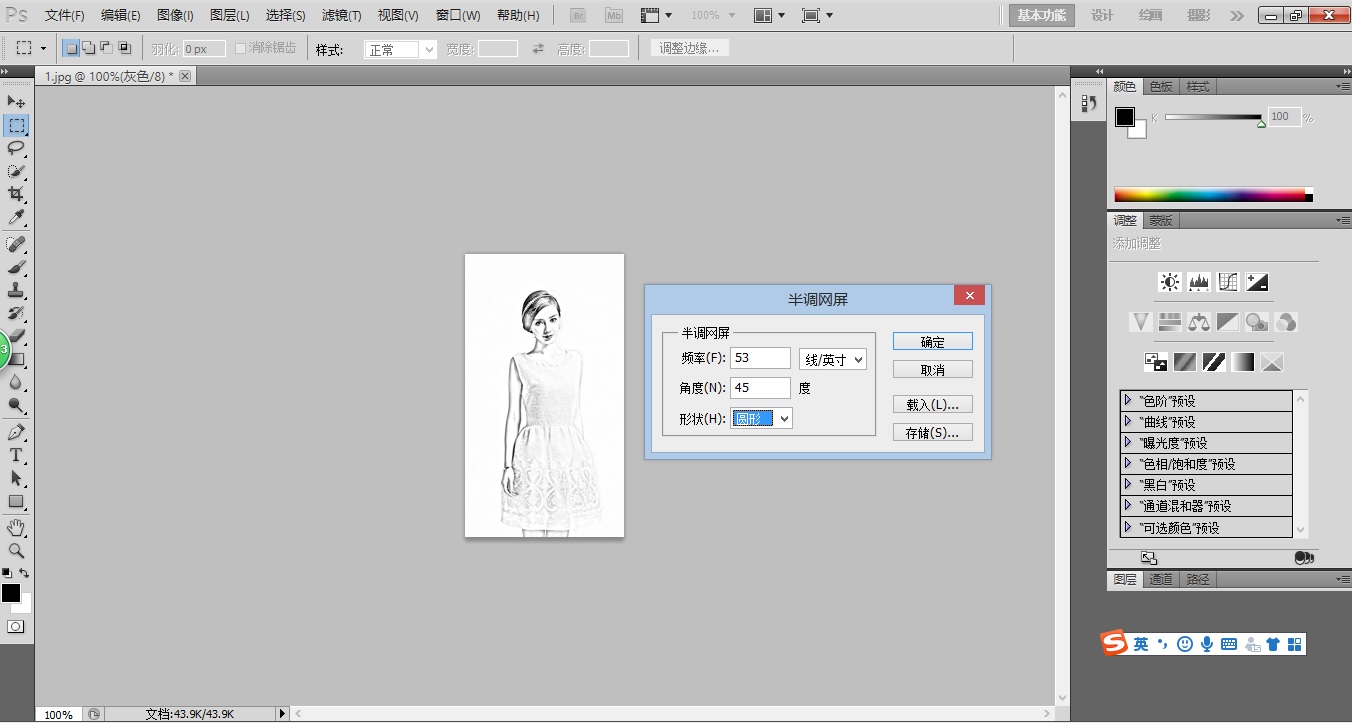 11、上圖設置好之后,點擊確定,選擇半調(diào)網(wǎng)屏,形狀選擇圓形。