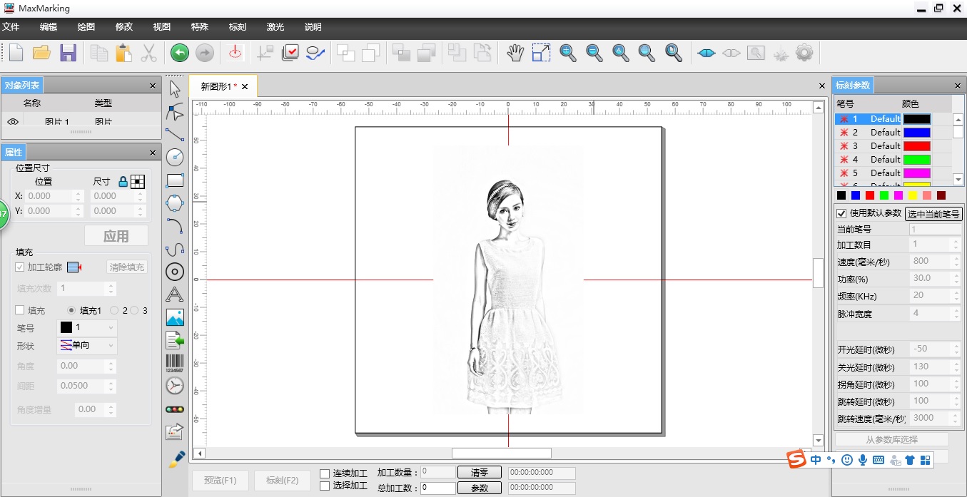 12、半調(diào)網(wǎng)屏點擊確定后,如下圖,到激光打標機軟件里面后就是典型的打點模式了。